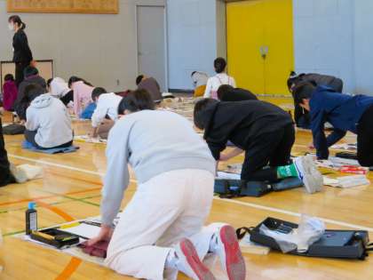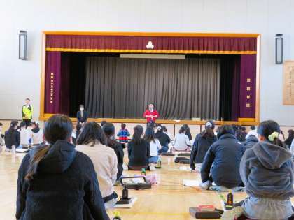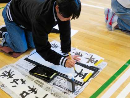 6年生席書会の様子です。6年生全員が体育館に集まり、しっかりと心を整えてから、書き初めがはじまりました。