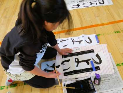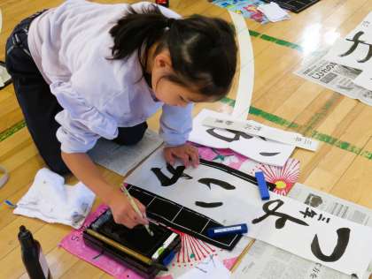 書き初め展は1月30日(木)〜2月12日(水)各学年の教室廊下前に掲示します。ぜひ、ご覧いただき、子どもたちを褒めていただければと思っています。