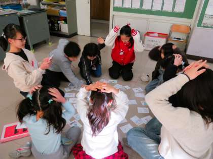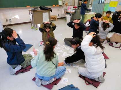 カルタ会のはじまりです。まずは、5年生が読み札を読みました。