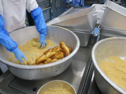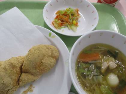今日は「揚げパン」の、きなこ味です。パンを油で揚げて、きな粉をたっぷりと使用しています、美味しくいただけるといいですね。