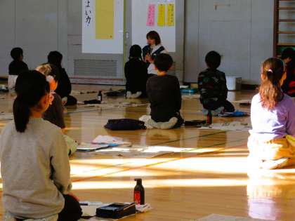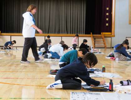 今日は3年生席書会です。3年生からはじめた毛筆での書き初め大会です。先生のお手本を見ながら、心をしっかりと落ち着け、ていねいに筆を進めていました。真剣な眼差しに、緊張感が伝わってきました。