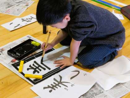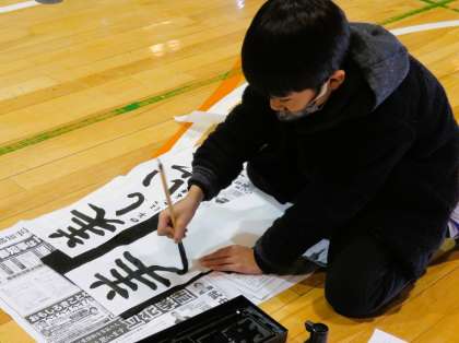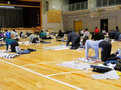 4年生席書会の様子です。体育館でしっかりと心を落ち着け、一画一画ていねいに筆を進めていました。