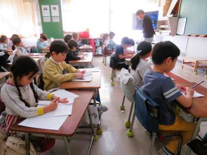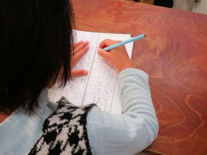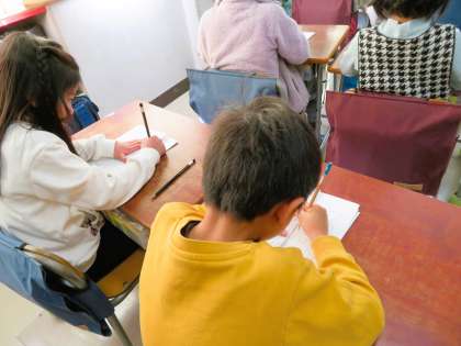 お手本をよく見て、一文字一文字集中し、気持ちをこめて書いていました。