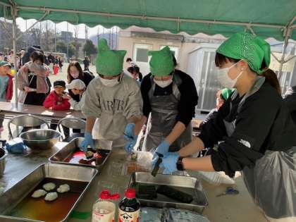 きな粉もち、磯辺もちの2種類を取り分けていただきました。先生たちもたくさん手伝いをさせていただきました。