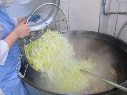 今日は「鶏肉のスタミナ焼き」です。にんにくと調味料で下味をつけてオーブンで焼いています。野菜とスープも一緒に美味しくいただけるといいですね。
