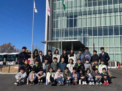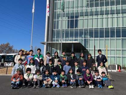 正門前で集合写真を撮りました。お天気にも恵まれました。