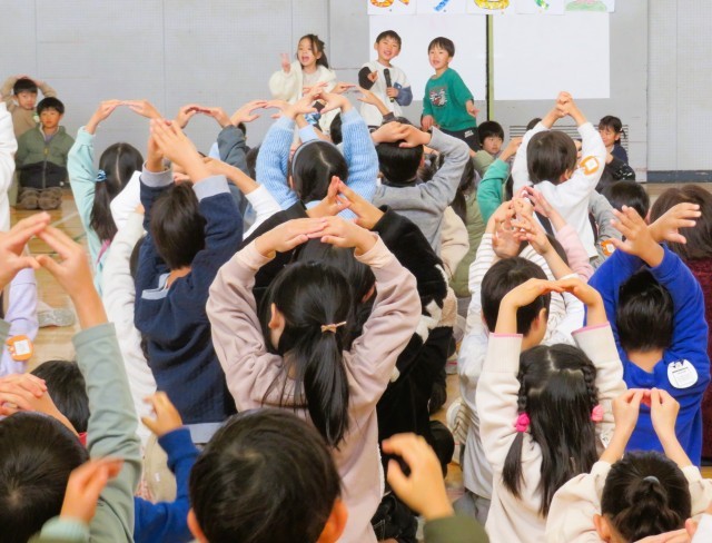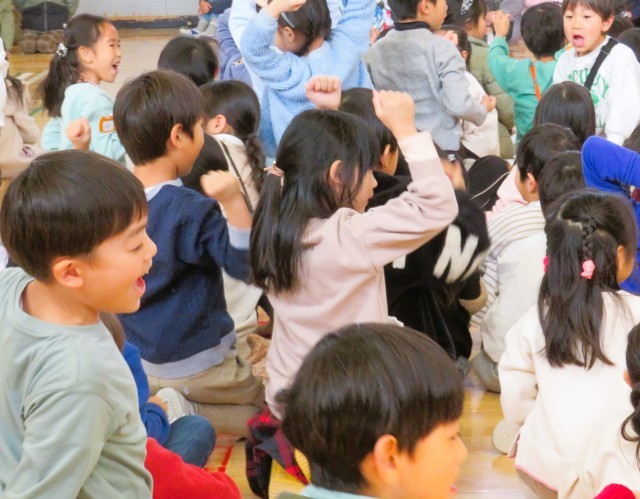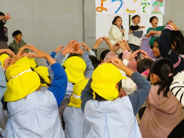 体育館交流でゲームがはじまりました。〇×クイズからスタートです。