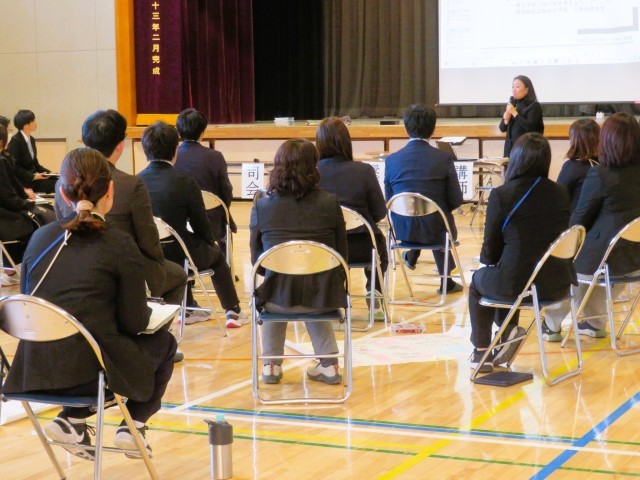 子どもたちの下校後は、実践した授業をもとに協議し、講師の大村英視先生からご指導をいただきました。講師の先生からは、「子どもたちがやる気いっぱいで臨んでいた」「先生方が明るくていい顔をしている。表情がいいから子どもたちの表情もいい」と褒めていただきました。今後とも、松丘小学校の子どもたちが心身ともに健やかに成長していけるよう、教職員は勉強を続けます。