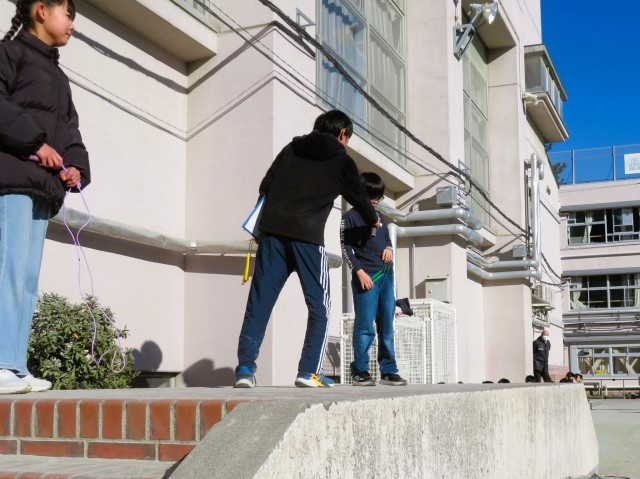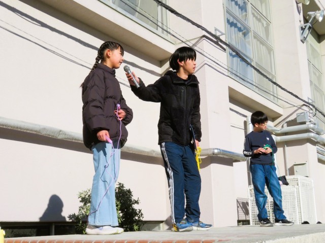 5年生がお手本として、二重跳びを見せて、ポイントも教えてくれました。きれいな二重跳びに大きな拍手が起こりました!