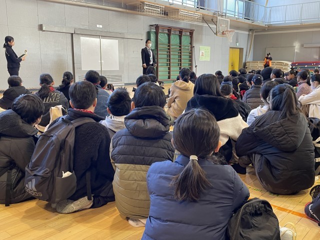 今日は6年生の社会科見学で、国会(参議院)、科学技術館の見学です。まずは、出発式を行いました。