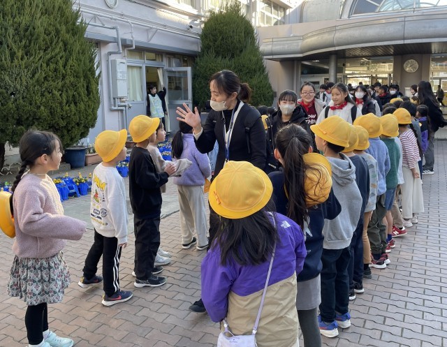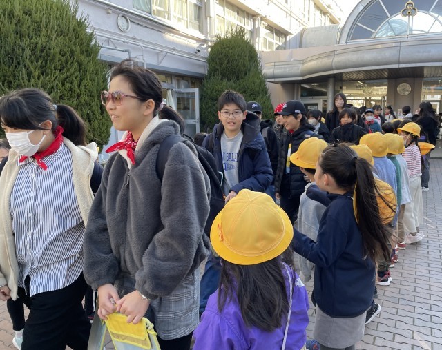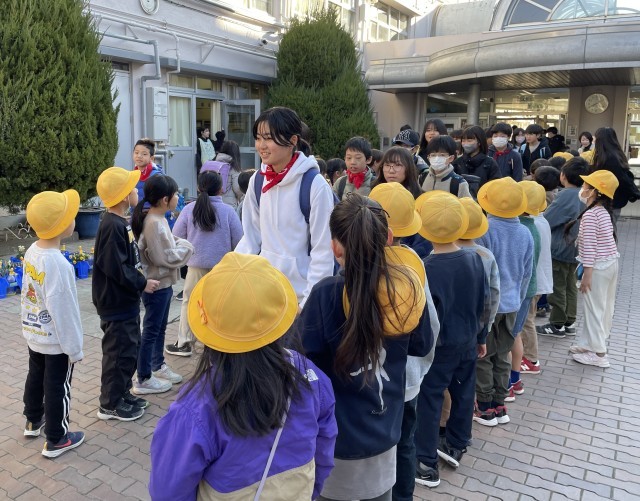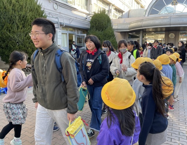 学校を出発するときに、1年生や先生たちが「いってらっしゃーい!」と、温かく手を振って見送ってくれました。3年生からは「いってらっしゃい!」の掲示物もありました。