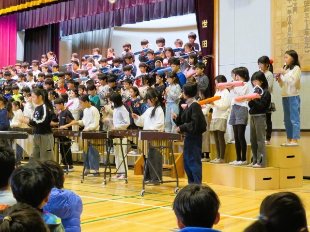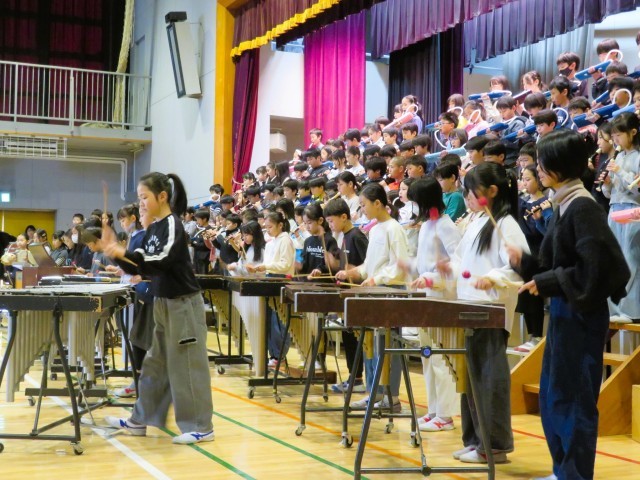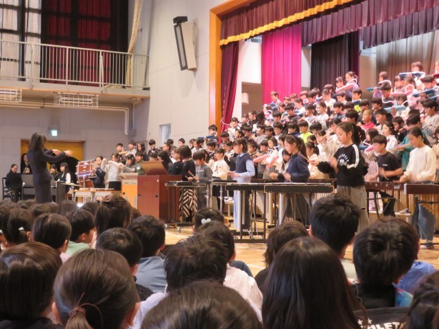 千本桜の合奏です。4年生は、一人ひとりが音をしっかりと響かせて演奏していました。