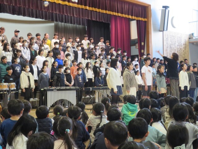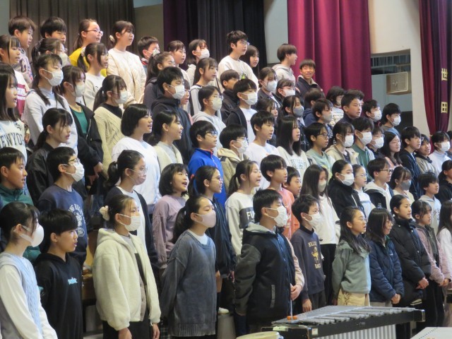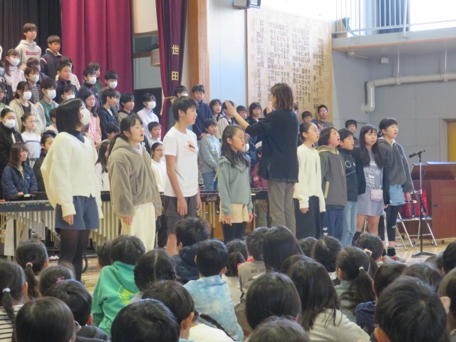 今度は、6年生からのお礼の言葉と「虹」の合唱です。最高学年としての気持ちのこもった合唱を披露してくれました。