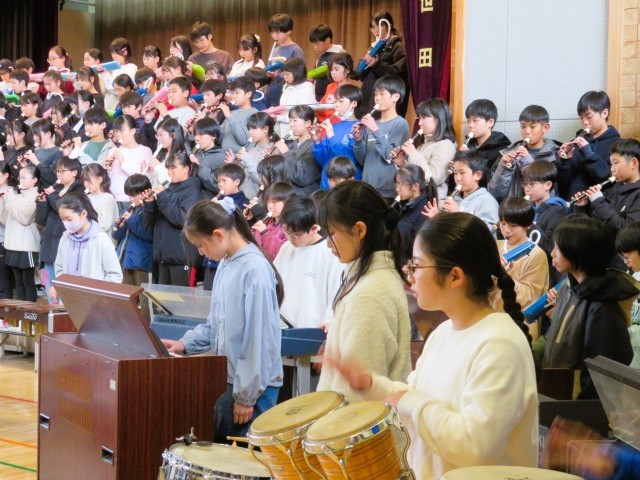 続いて、「Paradise Has No Border」の合奏です。迫力ある演奏で6年生の底力をしっかりと感じました。この6年生の真剣さ、真っ直ぐさは、本校の良き伝統となって根付いています。