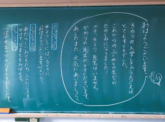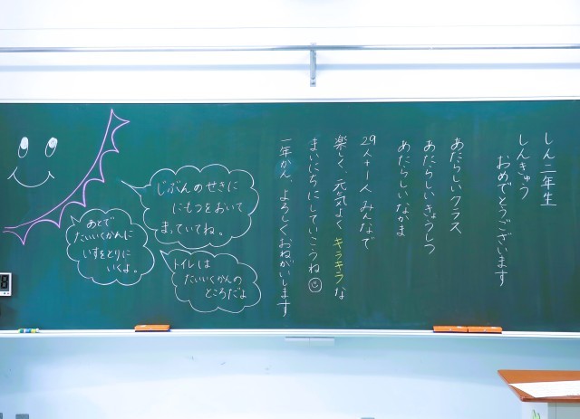 担任の先生からの温かいメッセージが、子どもたちを迎えていました。ここに紹介するのはその一部です。