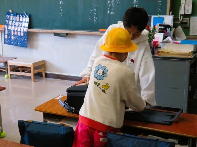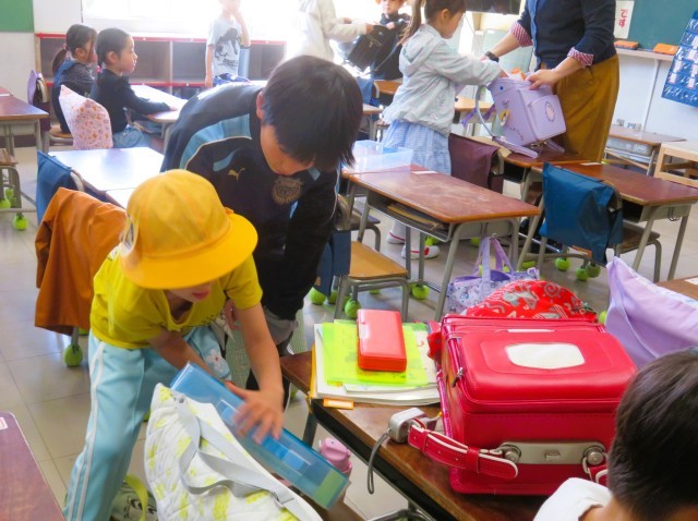1年生に接するやさしい姿は、さすが松丘小学校最高学年の6年生です!