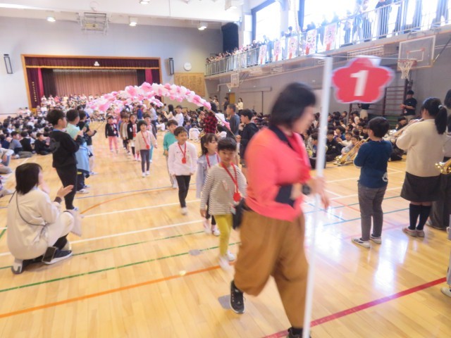 1年生の退場です。「早く松丘小学校に慣れてください!」「わからないことがあったら何でも聞いてください!」といった優しい言葉がたくさんあり、1年生は安心した様子でした。