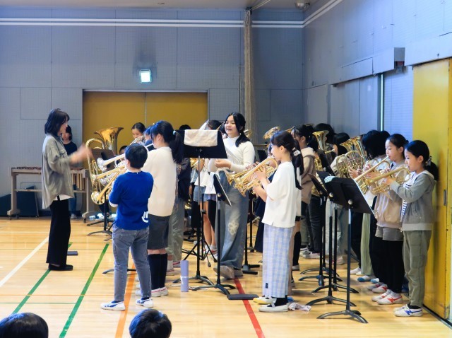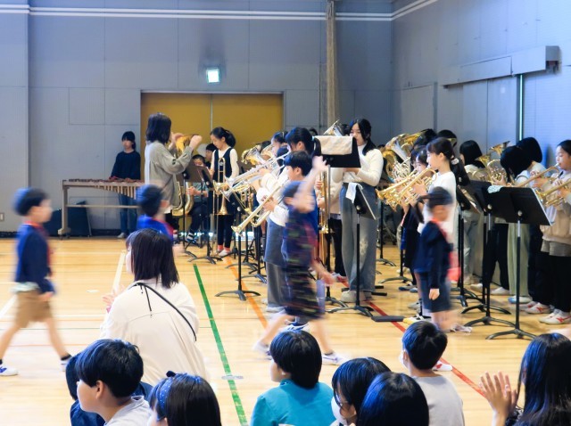 入退場の曲として「崖の上のポニョ」と「ピクニック」を演奏してくれました。とっても素敵な演奏で盛り上げてくれました。金管バンドの皆さんありがとうございました!