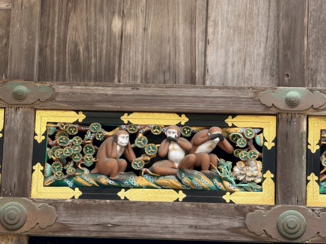 私は、世田谷区立小学校6年生の担任先生たちと日光林間学園の合同実地踏査(下見)に2日間行って来ました。往復の観光バスをはじめ、ホテル、見学先などが、私たちを受け入れるにあたって、様々な準備や対策を講じてくださっていることがよく分かりました。写真は、日光東照宮の五重塔、三猿です。