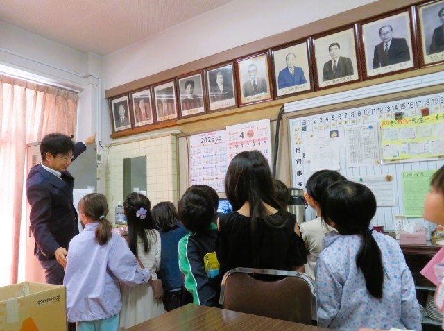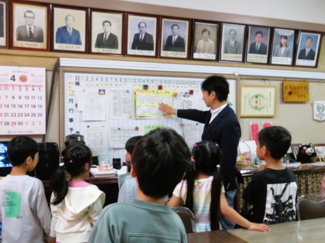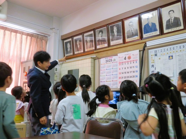 「ここが校長室で、校長先生がお仕事をしています!」などと、わかりやすく説明をしていました。2年生が良きお手本となってあいさつをしているので、1年生にもとってもよい学習となりました。