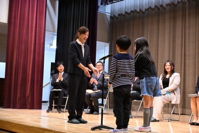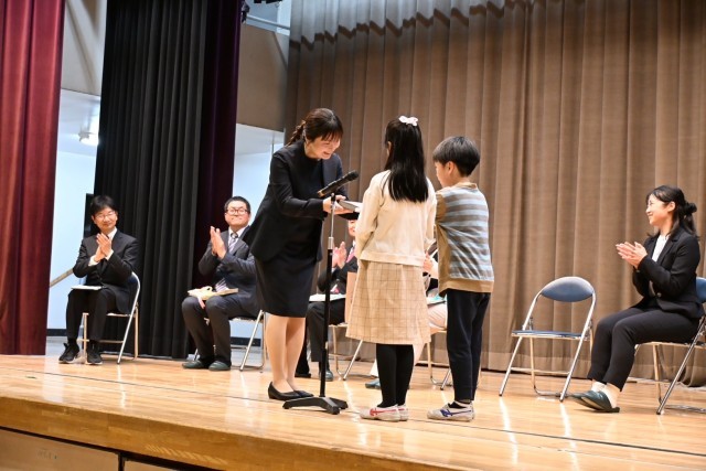 一人ひとりの先生方に手紙を読む子が、全校を代表して壇上に上がりました。