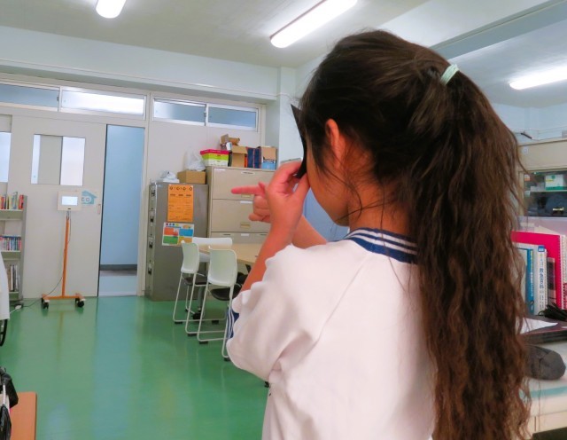 さすが松小の1年生です。静かに視力検査の様子もうかがいながら、子どもたちだけで待つことができていました。