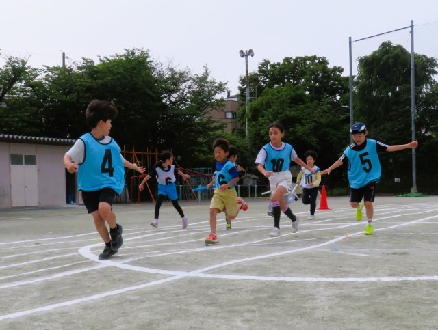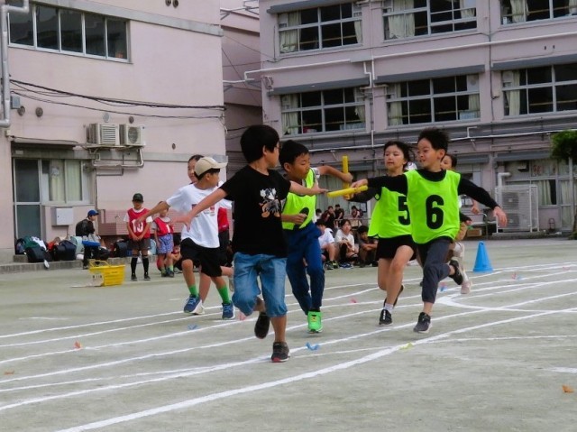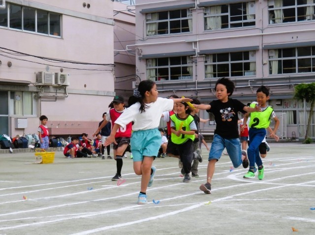 写真は中学年リレーの様子ですが、子どもたちと教師が共に汗を流しながら、よりよい運動会になるよう練習を重ねています。