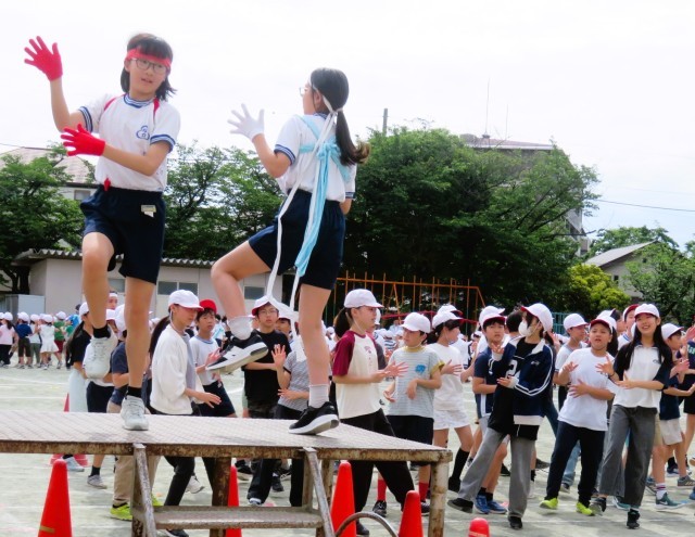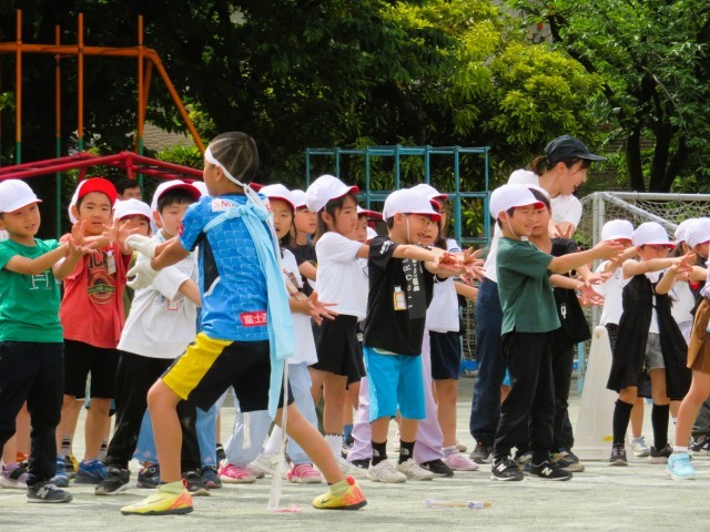 全校の子どもたちで、「ボンファイヤーダンス」を踊って盛り上がります!