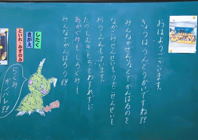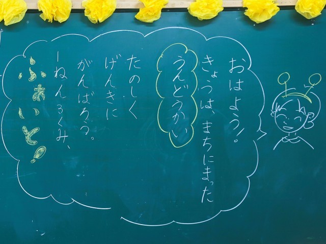 写真は、1年生の黒板です。