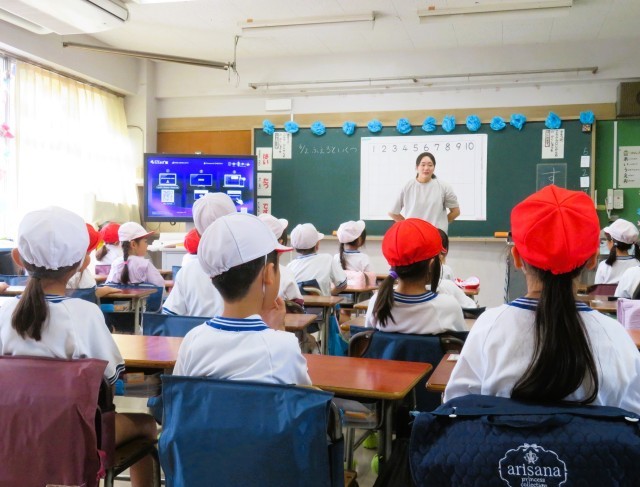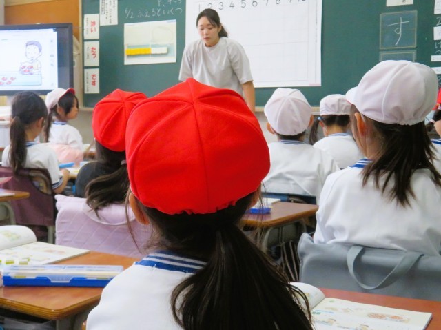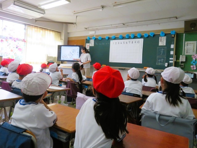 1年生の清水教諭が算数の研究授業を行いました。「あわせていくつ ふえるといくつ」という単元で、「ふえるといくつ」というねらいをもっての学習です。クラスの雰囲気が温かく、担任の先生との信頼関係が感じられて嬉しく思いました!