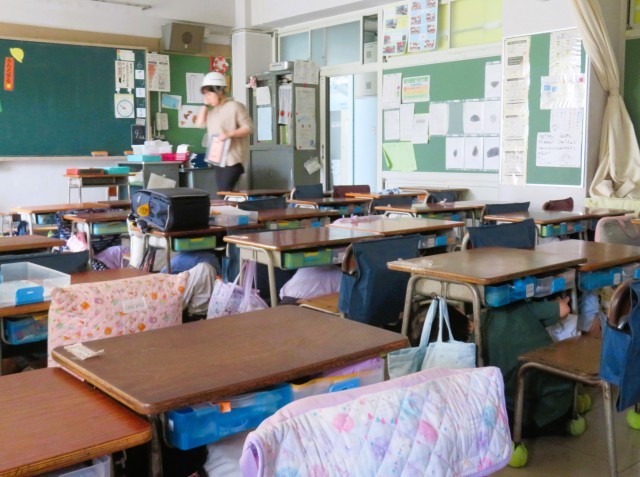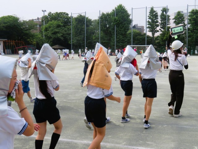6月の避難訓練は、朝遊びや朝学習中に地震が発生、その後に家庭科室から火災が発生という想定で行いました。子どもたちは、「お・か・し・も・ち」の約束を守り、素早く、そして真剣に避難訓練に取り組みました。