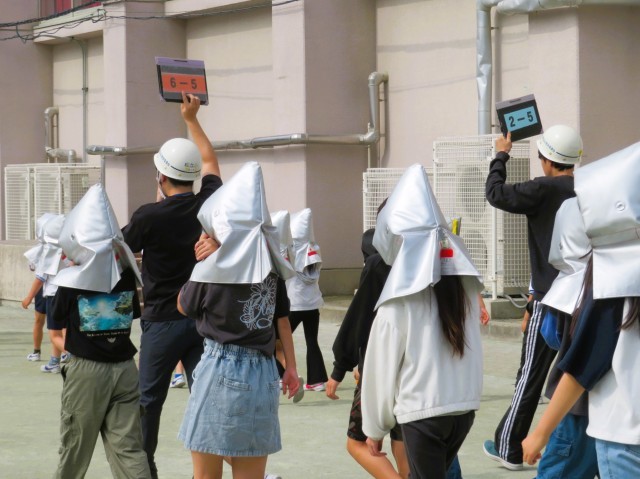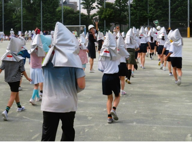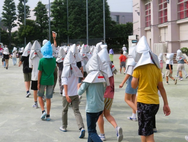 お喋りなく整然と集まることができました。しかしながら、ハンカチや衣服で鼻や口を覆っていない子が4名いたため、今回の避難訓練は「合格」を出すことができませませんでした。