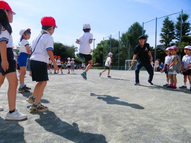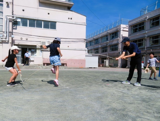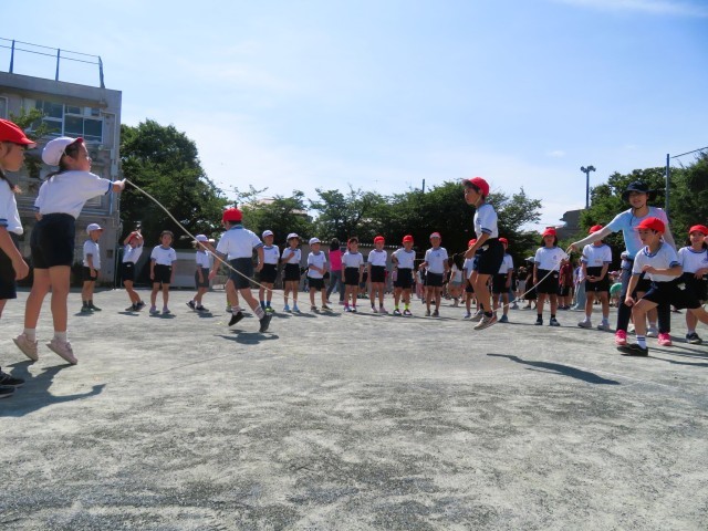 今朝は2・4・5年生の体育朝会です。長縄跳びは、学級のチームワークづくり、運動感覚づくりにはとてもよい運動種目なので全校で取り組みます。それぞれの学年・学級ごとに目標は異なりますが、自分たちのチームの力を信じて、目標を掲げがんばっています。