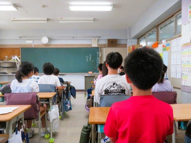 写真は、姿勢よく話を聞いている6年生の様子です。