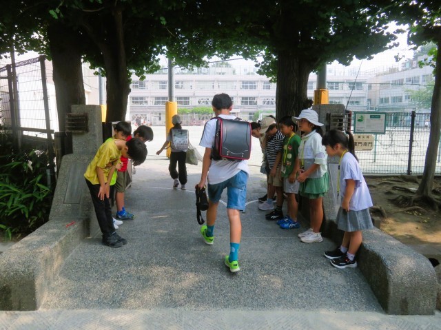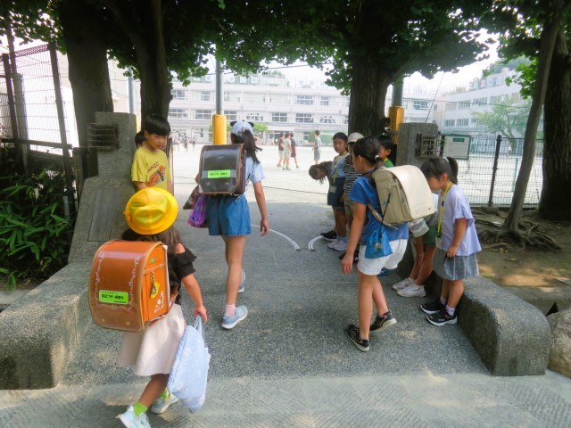 今日は7月の「優郷の学び舎」あいさつ運動1日目です。3年生が正門と南門でのあいさつ運動です。登校して来る子どもたちへ、気持ちのよいあいさつを投げ掛けてくれています。