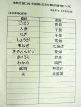 1月22日(木) 給食食材産地 今日の給食「冬野菜カレーライス・牛乳・野菜の甘...