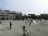 重点を置いている短なわとび指導を生かし、今日は駆け足なわとびリレーを行っていま...