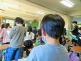 1年生の配膳もすっかり慣れたものです。引き続き飛沫防止策として、パーテーションを...