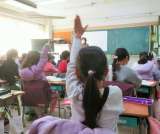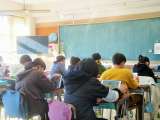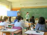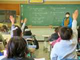 写真は、放送朝会を聞いている4年生の様子です。 職員室から話をしていますが、いつ...