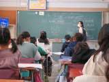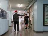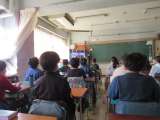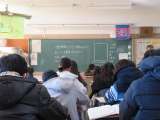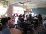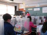 写真は、全校朝会の話を聞いている4年生の様子です。 職員室から話をしていますが、...