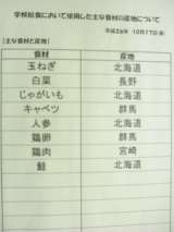 10月31日(金) 給食食材産地 今日の給食「たらこスパゲッティ・牛乳・即席...