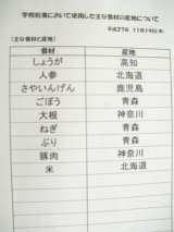 11月19日(木) 給食食材産地 今日の給食「ごはん・ぶりの西京焼き・切り干し...