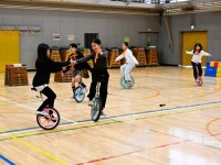私のあいさつ、続いて日本の昔遊びを披露しました。こま回しの様子ですが「こまの...