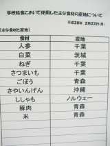 2月26日(金) 給食食材産地 今日の給食「みそラーメン・大根のゆかりあえ・お...