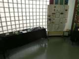 4年生の昇降口前のところに、クラブ発表の展示をしています。鉄道クラブのジオラマや...
