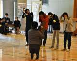 舞台で記念写真を撮影しました。 写真は、1組の様子です。