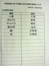 3月20日(金) 給食食材産地 今日の給食「あけぼのずし・牛乳・おひたし・紅白...