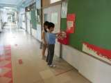 雨が降っている朝の入室練習、その二回目にトライしている1年生です。徐々にスムー...