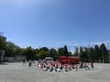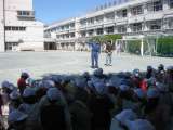 スカッと晴れ渡った空の下、校庭に消防車と救急車がやって来ました。と言っても、緊...