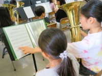 上級生が新入部員の4年生に、楽譜を指差ししながら教えている姿が温かくて素敵です!
